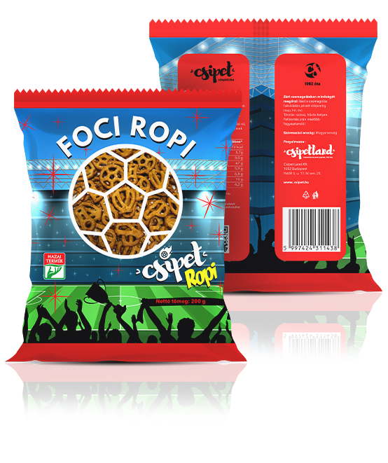 Új formák, új design, ám a hagyományos, már jól ismert ízek, melyek még izgalmasabbá teszik az év kedvenc sporteseményét. Szurkolj a csapatodnak, és éld át a legizgalmasabb perceket, a legélesebb helyzeteket a Csipet Foci Ropi társaságában.